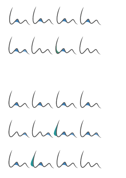 Gewöhnlich markieren Akkorde oder Verzierungen den für eine Sarabande typischen, gewichtigen zweiten Schritt im Takt. Hier ist es die Spannung kleiner Sekunden. Mit dem kleinsten Intervallschritt werden fast alle zweiten Schritte im Takt hervorgehoben. Doch mehr noch: Folgt man den kleinen Sekunden, so zeigt sich mit ihrer Verteilung (häufigeres oder fehlendes Auftreten) die Dramaturgie des gesamten Stückes. Die folgende Grafik beschreibt Takt für Takt den Puls der ganzen Sarabande, dabei sind die kleinen Sekunden farblich hervorgehoben: